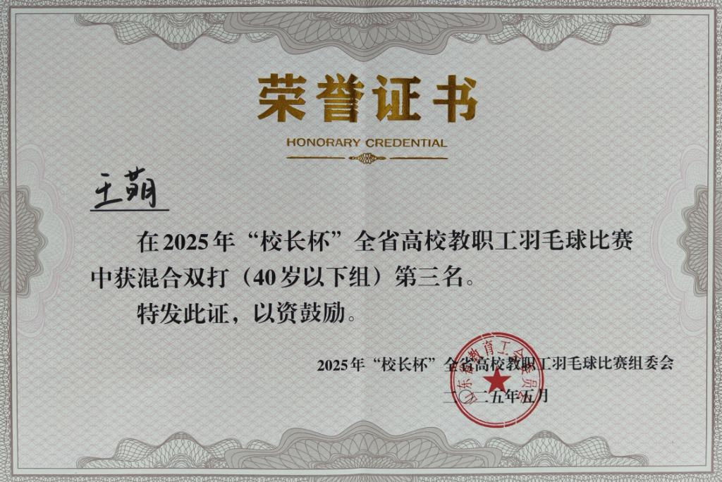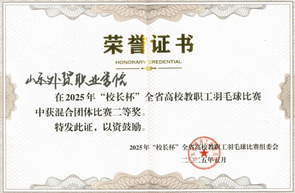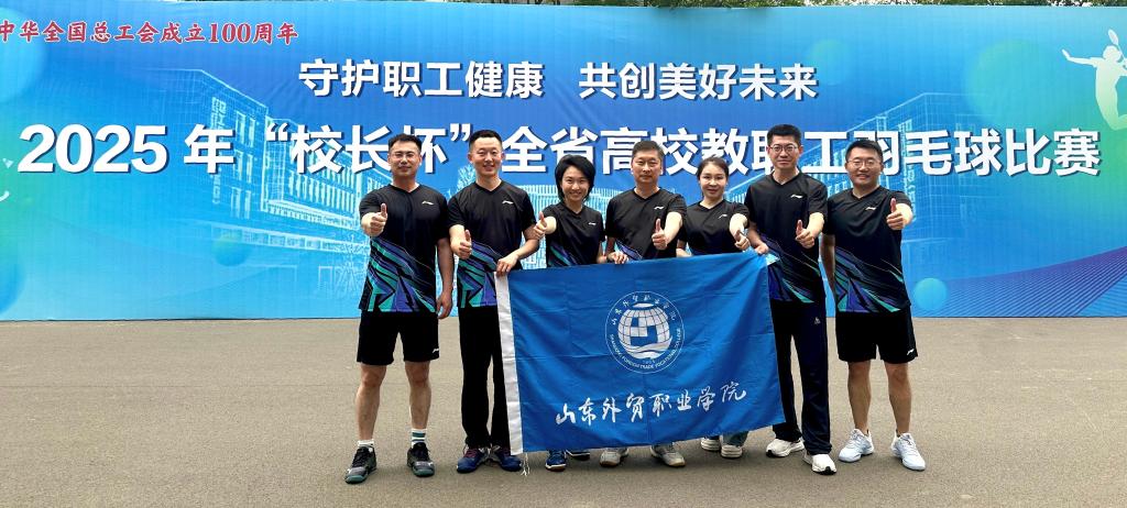 为庆祝中华全国总工会成立100周年,5月7日由山东省教育工会主办的“校长杯”全省高校羽毛球比赛在山东农业工程学院举行。学院组成由党委副书记黄维和6名教职工在内的代表队,经过紧张激烈的备赛参赛,最终荣获混合团体赛二等奖、40岁以下混双季军、40岁以上男单第六名及“优秀组织奖”。