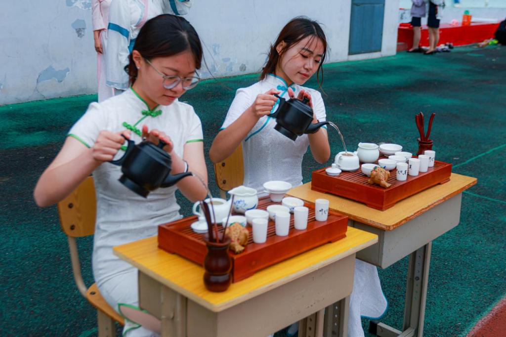 活动现场,咖啡社摊位前香气四溢,精心调制的新品咖啡融合多种风味,满足不同味蕾需求。茶艺社的同学们身着传统服饰,带来行云流水般的茶艺表演。互动环节中,茗茶品鉴与茶宠拼字游戏别具匠心,让大家在茶香中学习品鉴知识,加深了对茶文化的理解。优雅舞社带来古典舞《青花瓷》,通过灵动舞姿,将古典韵味与悠扬旋律完美融合,赢得现场阵阵掌声。
