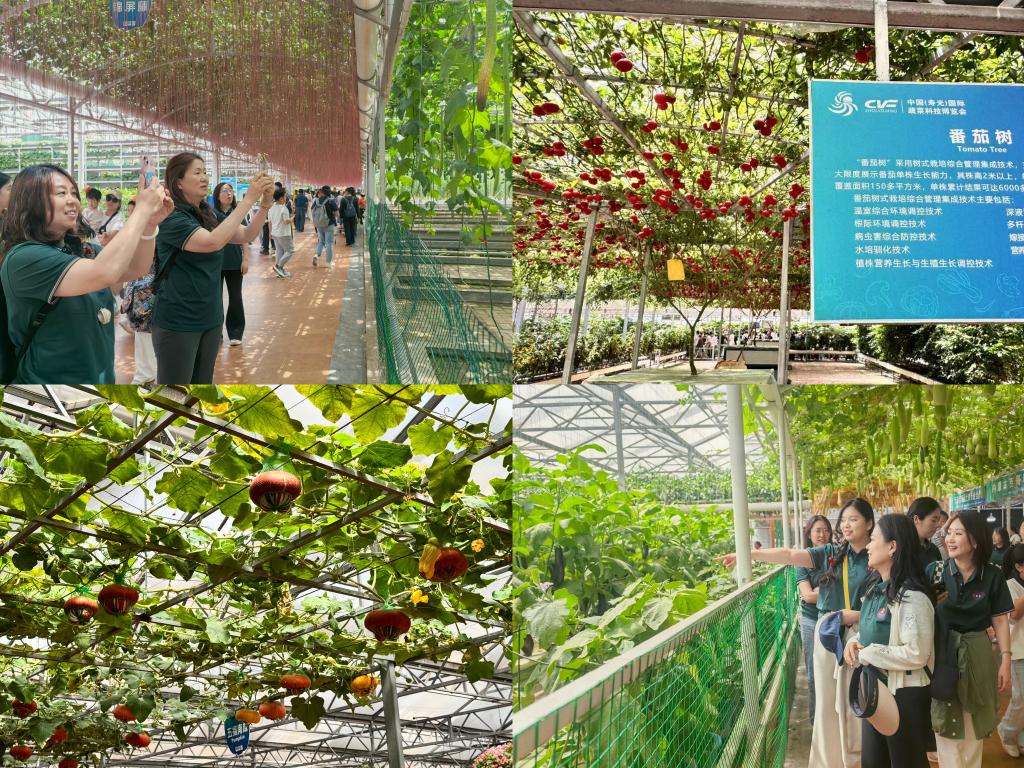 在菜博会现场,教师们近距离参观了蔬菜、种子及相关产业的最新科技成果和中国空间站神舟十二号飞船航天育种展。展馆内80余种先进栽培模式集中展示的水培、雾培、鱼菜共生系统等新技术,以及融合物联网技术的“植物工厂”通过LED光源调控和营养液循环系统实现蔬菜高效生产,生动展示了农业科技化、产业化的新路径。教师们震撼于展区内单株结果6000斤的番茄树、“腰围”三米的巨人南瓜、“一树一亭”的西红柿树和智能喷雾机器人、垂直立体自动换位种植模式、智能化温室控制系统等前沿技术成果。下午,在山东省党员干部现代农业培训基地,教师们系统了解了寿光蔬菜产业从传统种植到全链条升级的发展历程,学习了现代农业科技创新成果和党建引领下三元朱村乡村振兴的实践模式。智慧农业示范棚基地负责人带领教师们实地参观了智能化温室大棚,介绍了寿光蔬菜产业转型智慧农业的过程,现场观摩了水肥一体化系统、无土栽培技术、物联网环境监测等现代农业技术的应用。各类优质蔬菜品种和高效栽培模式使教师们深刻感受到科技对农业生产的巨大推动作用。