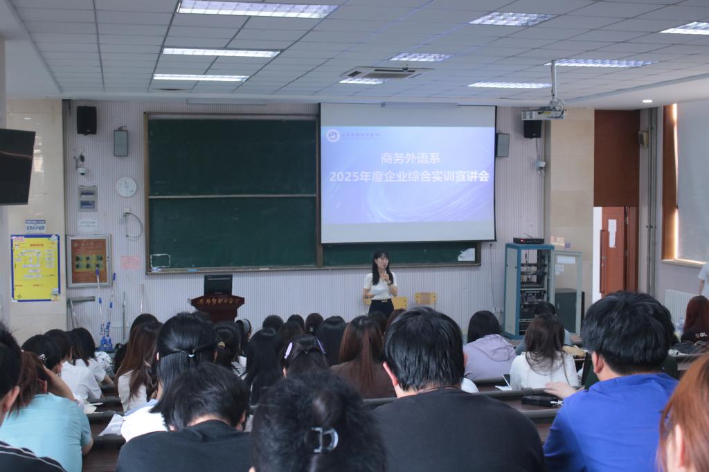 为深化产教融合、推动校企协同育人,5月22日下午,商务外语系在2号教学楼B3阶梯教室举办2025年企业综合实训宣讲会。深圳市巡洋国际物流有限公司青岛分公司等9家优质企业代表走进校园,为2026届毕业生带来前沿行业动态与实训岗位资源。