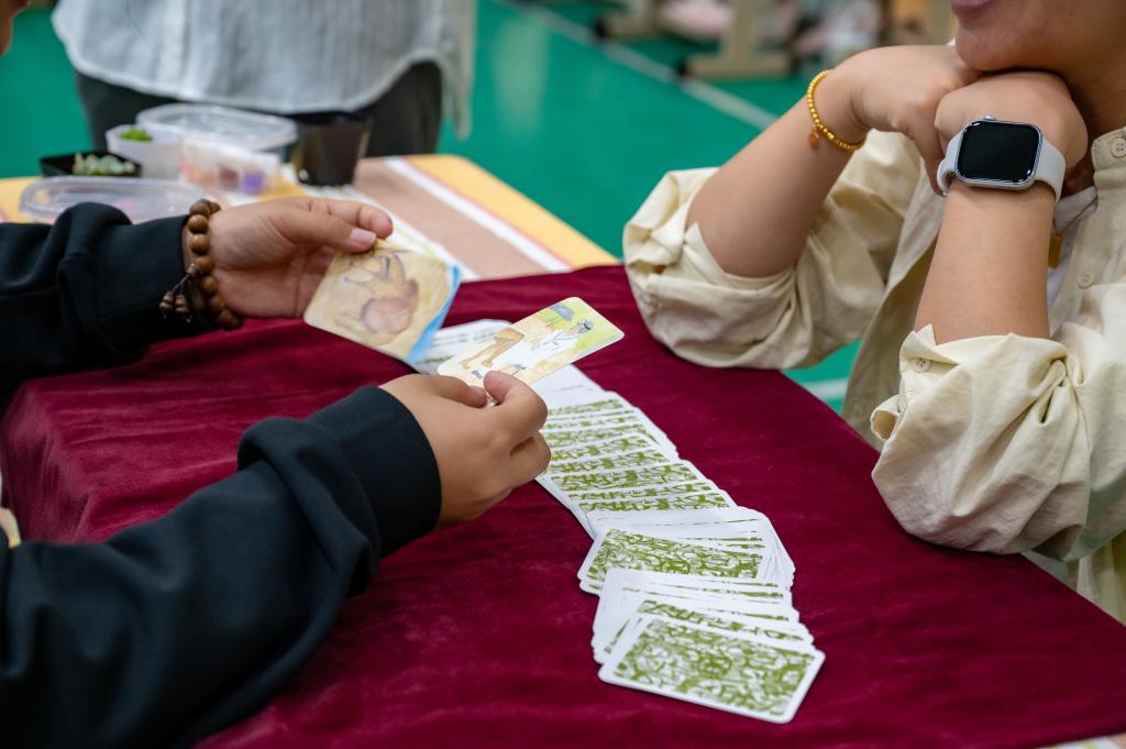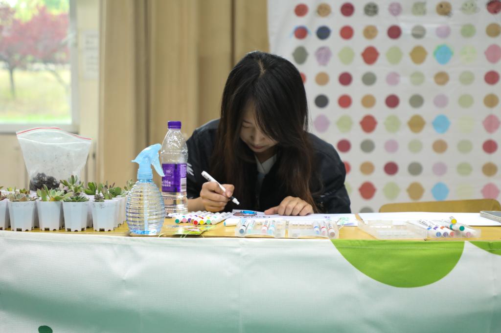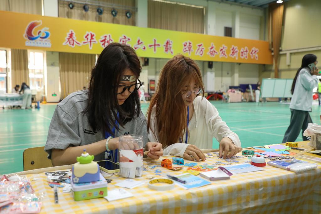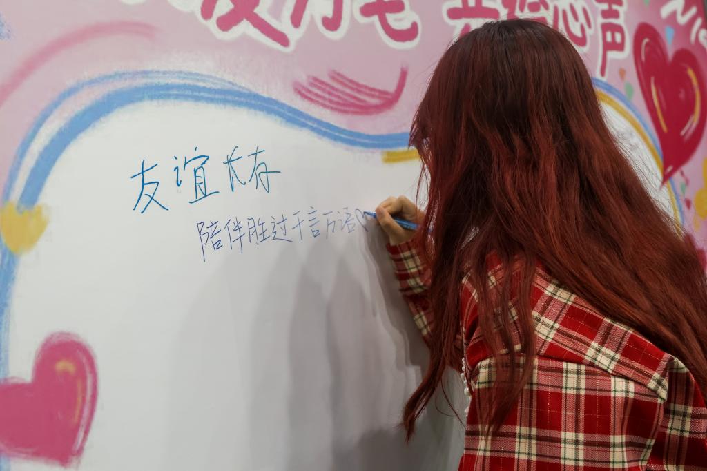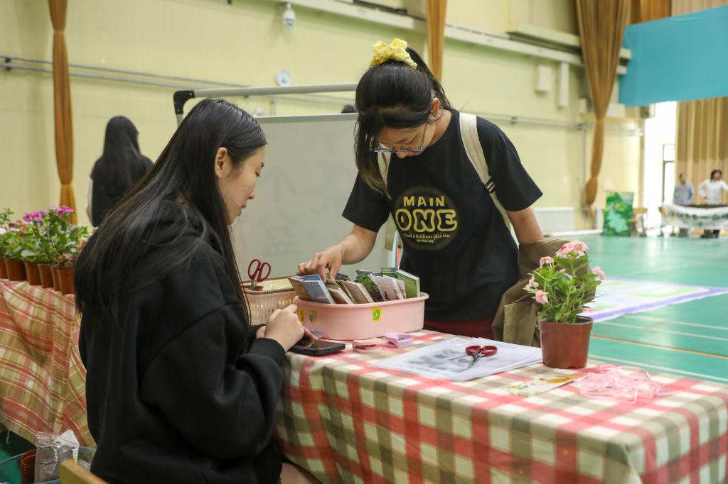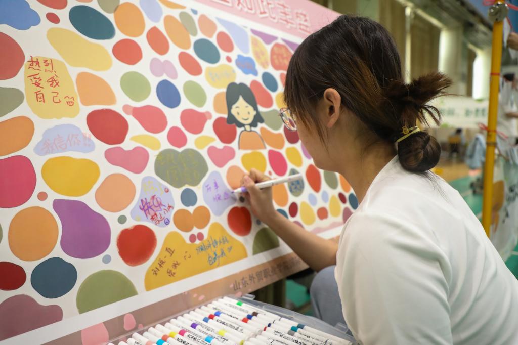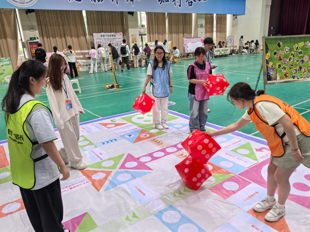 心理中心聚焦多元化心理关怀,推出“疗愈光合研究所”活动。参与者借由沙盘和OH卡探索潜意识,觉察自我并表达情感;通过友谊飞行棋的团队合作深化友谊,提升沟通与信任能力;借助VR技术,沉浸自然场景放松身心,缓解焦虑情绪。现场派发的“情绪急救书签”给予情绪高温下的缓解技巧,成为学生的随身心理指南;绿植共养计划以绿意为媒引导学生感悟生命成长,用合作育苗启发学生珍视友谊。各系活动创意迭出,精彩纷呈:国际贸易系用“幸福泡泡”记录快乐小事;财会金融系以非遗柳编和跳房子游戏融合传统与减压;商务外语系的“元宇宙心旅”以陶泥发泄等活动让情绪自由流动;经济管理系共绘笑脸墙传递温暖;信息工程系的“萤火涂鸦”为心灵解码;国际运输与物流系将情绪碎片拼贴成艺术画;跨境电子商务系“减压工坊”以手绘帆布包等活动传递心灵正能量。