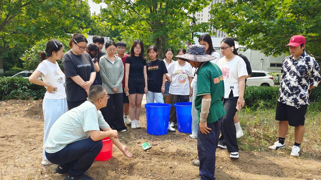 在实践环节,学生分组参与翻土、播种、浇灌全流程劳作,在挥锹铲土、精准播撒的协作中感受“一粥一饭,当思来处不易”的深刻内涵。这种“接地气”的劳动教育不仅让学生掌握了基础农技知识,更培育了团队协作意识与责任担当精神,实现了“在劳动中学习、在实践中成长”的育人目标。