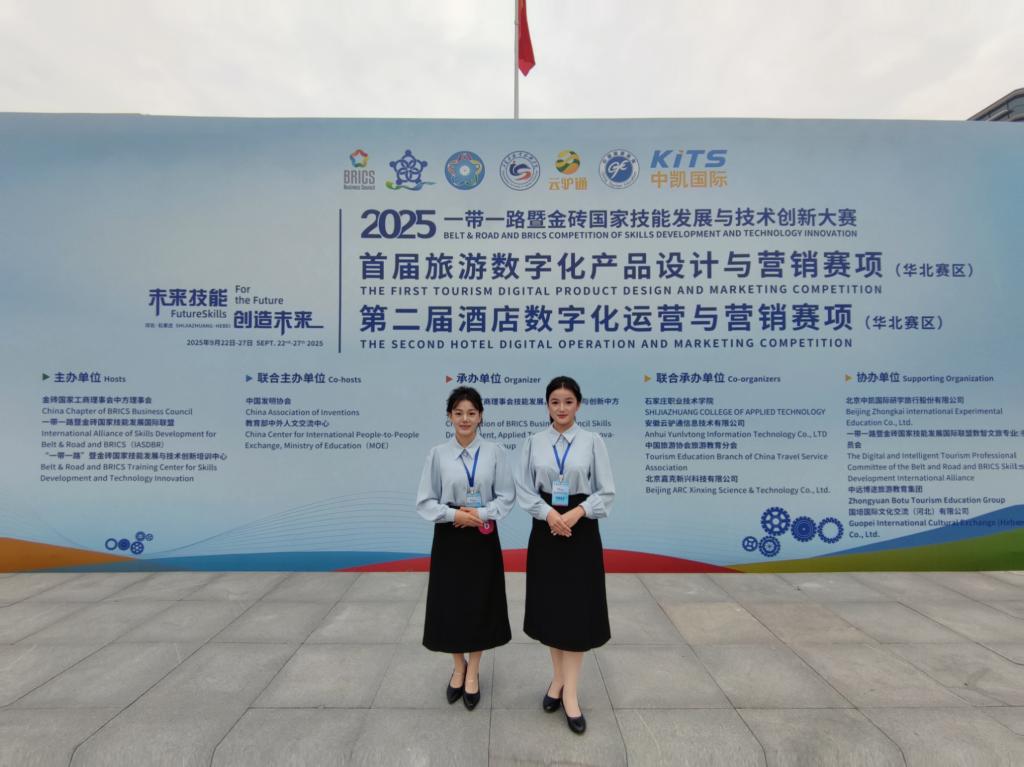 9月22日至24日,由金砖国家工商理事会中方理事会、一带一路暨金砖国家技能发展国际联盟等联合主办的“2025一带一路暨金砖国家技能发展与技术创新大赛”之首届旅游数字化产品设计与营销赛项华北赛区区域赛在石家庄职业技术学院举办,共有来自华北赛区24支代表队伍86名选手参加。伟德24级旅游2班邵梦园、马有福两位同学凭借扎实的专业功底与出色的实践能力荣获三等奖,成功晋级全国决赛。