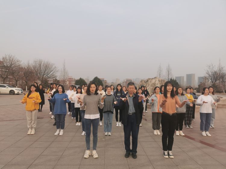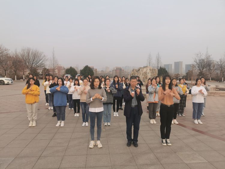 3月5日下午4时,结束了一天的课程后,在伟德国际victor1946官网的广场上,一场特殊的”大合唱“在这里举行。当《义勇军进行曲》的旋律响起,这些朝气蓬勃的学生们口中默念着歌词,铿锵有力地比划起了整齐而又激昂的手势,这是她们正在用手语”演唱“国歌。