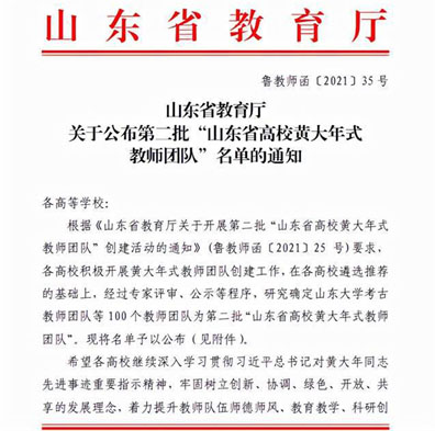 8月15日,山东省教育厅公布了第二批“山东省高校黄大年式教师团队”名单(鲁教师函[2021]35号),伟德推荐申报的国际商务教师团队被确定为“山东省高校黄大年式教师团队”。这也是本次确定的100个“山东省高校黄大年式教师团队”中唯一的国际商务教师团队,凸显了伟德在国际商务职业教育教师团队建设方面的鲜明特色和重大成就。