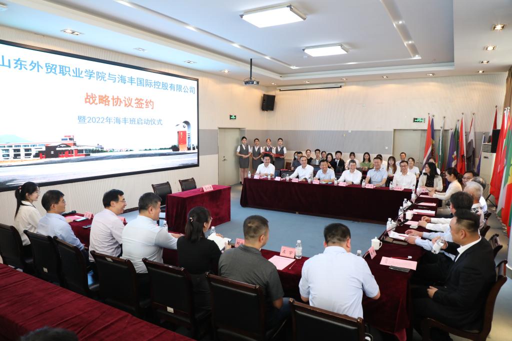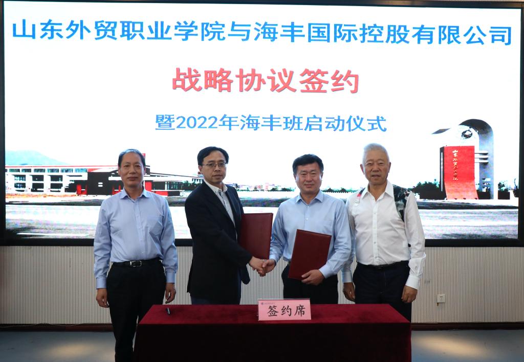 随后,双方领导签署战略合作协议,为“海丰国际供应链产业学院”揭牌并宣布2022年“海丰班”正式启动。