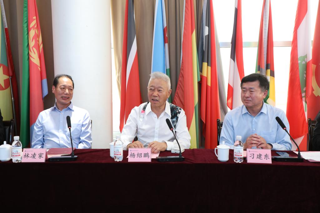 林凌家、刁建东陪同杨绍鹏、赖智勇一行参观了学院校友风采展,然后双方就校企合作培养国际物流人才工作开展座谈交流。林凌家在致辞中介绍了学院的发展现状和办学特色,他讲到,学院为能够培养一批批投身外经贸事业的优秀校友感到骄傲,同时对校友企业回馈母校、与学院共谋人才培养大计表示感谢。杨绍鹏回顾了30多年前在校短暂而珍贵的学习经历,以及带领校友们共同创业、发展壮大的历程,他表示,海丰国际的创始和成长与学院有着密切的关系,现在加深合作,旨在发挥各自的优势,联合培养更多行业急需的人才,希望“海丰班”的同学们能够秉承学院优良的学风,学习敢创敢干的企业精神,刻苦努力,尽快成长成才。
